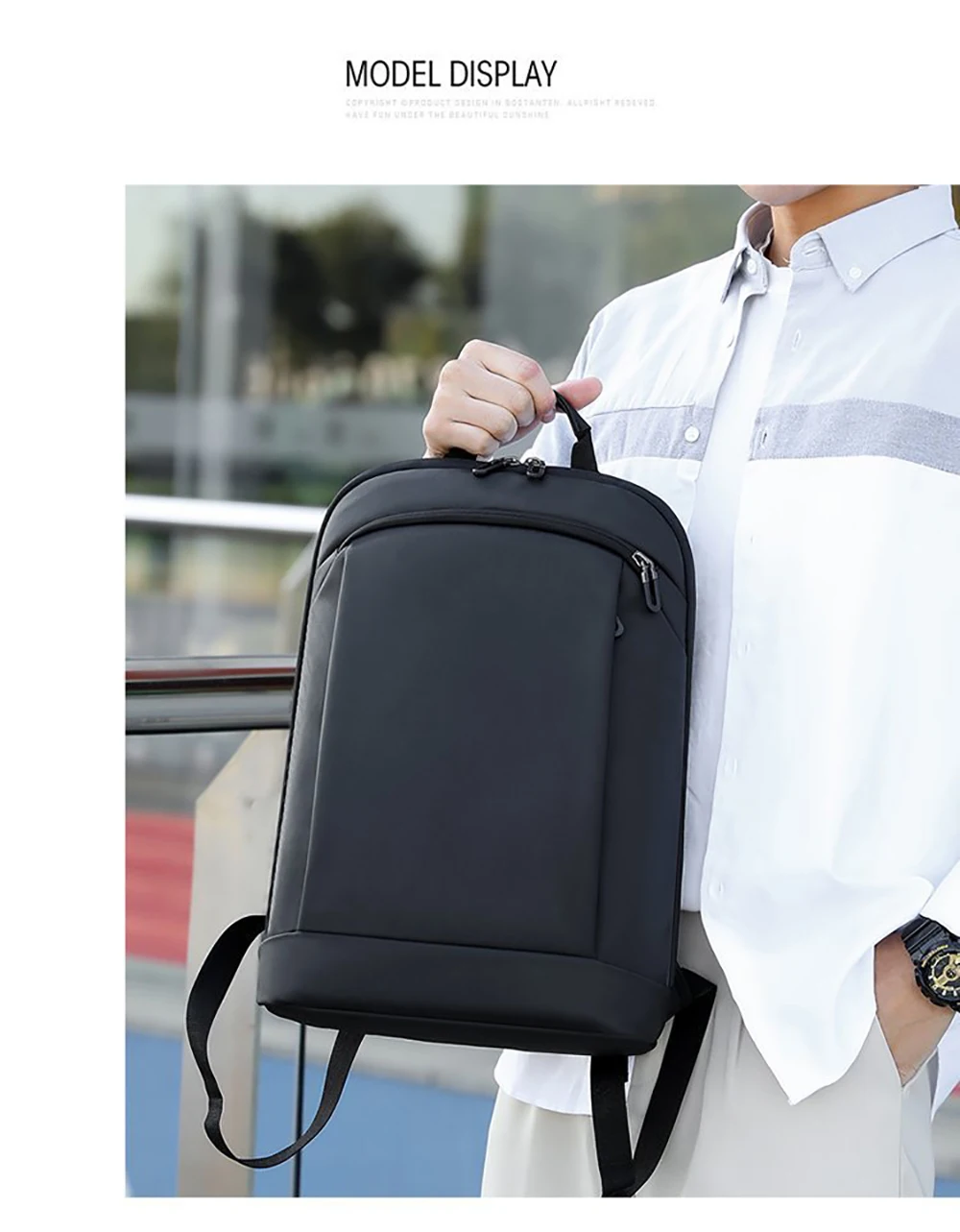Die ursprüngliche Designidee dieses Rucksacks ist: ein ultraleichter und ultradünner Rucksack, der das Pendeln erleichtert. Wir richten uns hauptsächlich an Nutzer von MAC-Laptops.