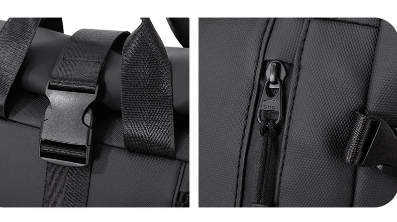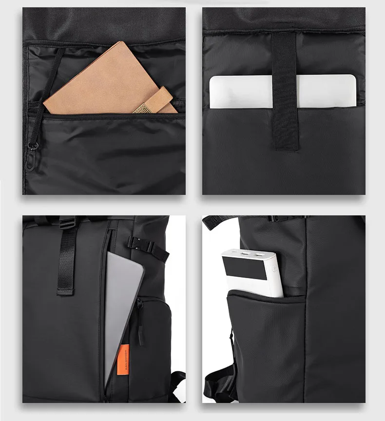 2. Großzügiges Hauptfach mit integriertem Laptopfach und Reißverschlusstasche; mehrere Reißverschlusstaschen am Taschenkorpus für bequemen Zugriff.